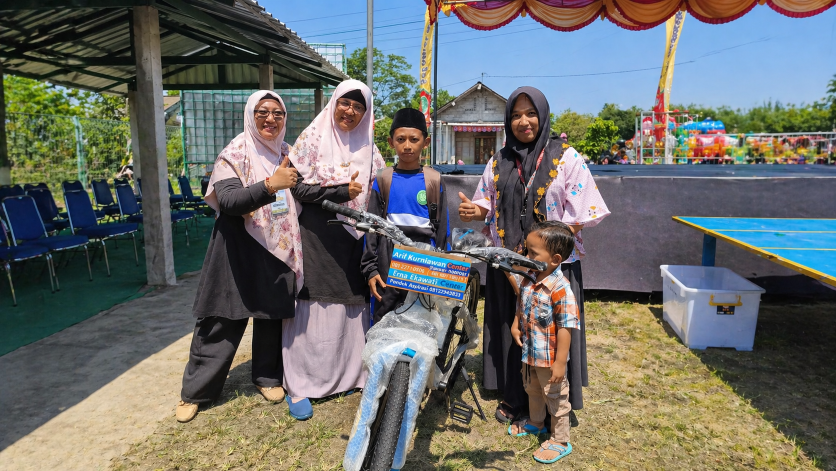 Puncak peringatan Hari Amal Bhakti (HAB) ke-58 MTsN 1 Sleman pada Jumat (24/4/2026) menghadirkan pengundian doorprize di panggung utama. Dalam undian tersebut, Kenzie Addzaka Wildansyah dari kelas 7E keluar sebagai penerima doorprize utama berupa sepeda. Kupon undian sebelumnya dibagikan kepada peserta dan dikumpulkan kembali saat kegiatan jalan sehat.