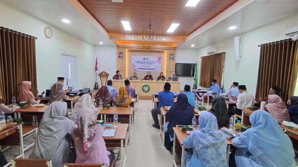 Acara dibuka secara resmi dengan sambutan oleh Kepala MTsN 1 Sleman, H. Sutarjo, S.Ag., M.Pd.I, yang menegaskan pentingnya penguatan kompetensi guru dalam mengelola pembelajaran berbasis literasi. “Pembelajaran berliterasi bukan hanya soal membaca dan menulis, tetapi juga bagaimana guru mampu menumbuhkan keterampilan berpikir kritis, kreatif, dan kolaboratif pada peserta didik,” ujarnya.