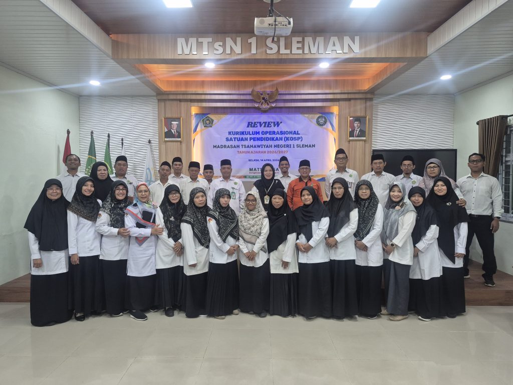 Guru dan pegawai MTsN 1 Sleman mengikuti kegiatan review kurikulum madrasah tahun ajaran 2026/2027 pada Selasa (14/4/2026), di ruang pertemuan MTsN 1 Sleman. Kegiatan ini dilakukan sebagai bagian dari persiapan sebelum tahun ajaran baru dimulai, di mana setiap madrasah perlu menyusun dan menyempurnakan kurikulum yang akan digunakan sebagai acuan seluruh kegiatan pembelajaran.