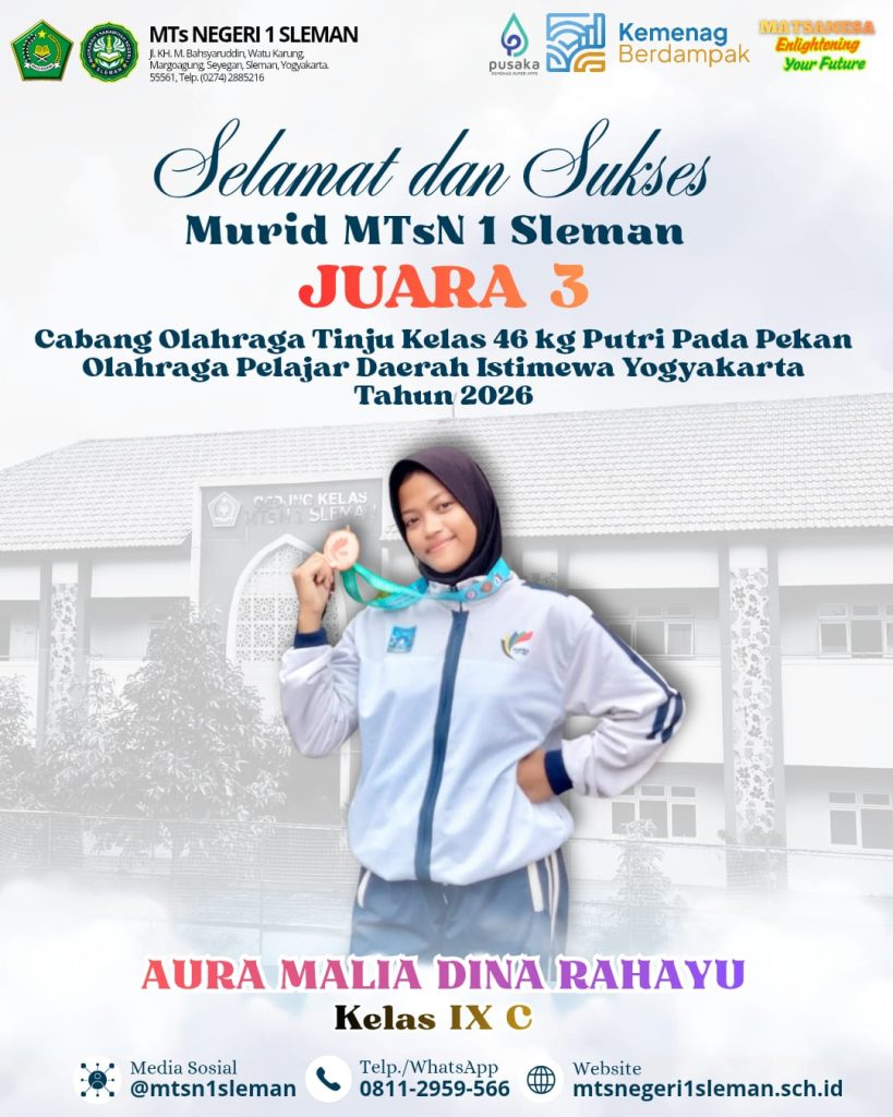Berikut ini adalah prestasi murid MTsN 1 Sleman bulan Januari-Maret 2026.